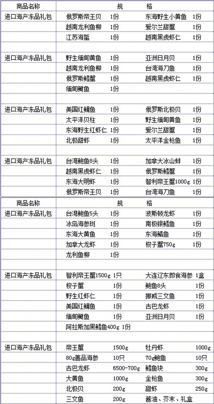 产品名称:进口海鲜大礼包